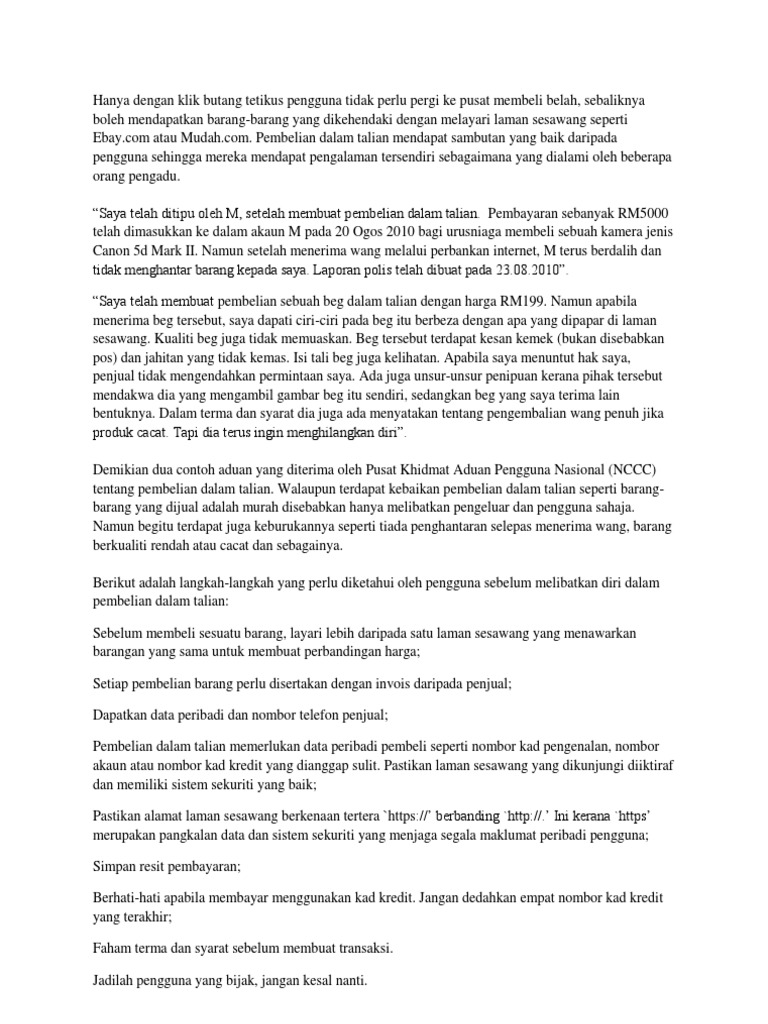 Esei Pengguna from imgv2-1-f.scribdassets.com Kelebihan pembelajaran dalam talian ini menyediakan kaedah yang bersifat lebih peribadi yang mana boleh digunakan oleh kebanyakan pelajar. Kebaikan membeli belah dalam talian. Pembelian dalam talian menawarkan banyak kelebihan, termasuk kebanyakan kedai dalam talian memudahkan anda untuk memulangkan item anda untuk alasan ini. Rasulullah saw sebuah haditnya menegaskan: Seperti yang anda harapkan, pembeli dalam talian berbeza dengan banyak cara. Kebaikan adalah akhlak yang baik, sedangkan dosa adalah apa. Terdapat sebilangan besar pembangun laman web ecommerce hebat yang disediakan untuk pemula yang hanya mahukan kedai dalam talian yang mudah dan berfungsi. Bagaimana anda mengucapkannya dalam bahasa indonesia?