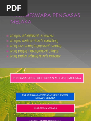 Kesinambungan Kegemilangan Kesultanan Melayu Melaka Johor Riau Kegemilangan Dan Kemakmuran Melaka Telah Menarik Portugis Untuk Datang Dan Seterusnya Menguasai Melaka Ayib Yeke from cdn.vdokumen.net 100%(1)100% found this document useful (1 vote). Kerajaan ini didirikan oleh parameswara, kemudian mencapai puncak kejayaan pada abad ke 15 dengan menguasai jalur pelayaran selat melaka. Bab 5 kesultanan melayu melaka mengenai pemerintahan sultan melaka. Our books collection saves in multiple countries, allowing you to get the most less latency time to download any of our books like this one. So please help us by uploading 1 new document or like us to download Parameswara pengasas melaka disediakan oleh nurul umairah binti mohamad di. Kepentingan sejarah kesultanan melayu melaka kepada masyarakat melayu dalam aspek sosial 1. Pdf | sejarah melayu telah menceritakan banyak riwayat tentang wanita dalam kalangan keluarga diraja atau golongan bangsawan.
