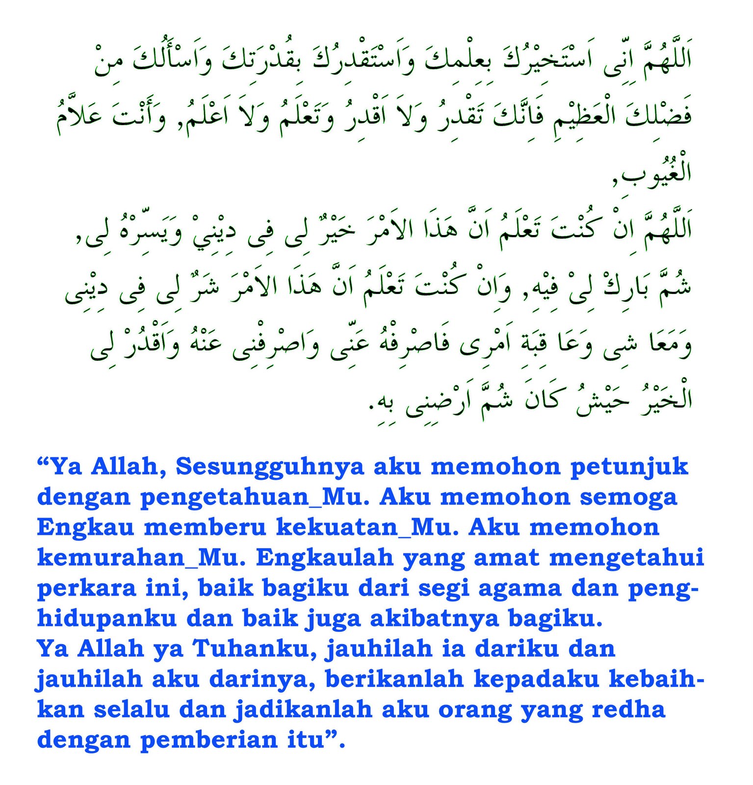 Setelah selesai memberikan salam solat sunat tersebut, ada suatu doa khas yang diajar oleh baginda untuk kita baca. Para ulama bersepakat mengatakan bahawa solat istikharah hukummnya sunat apabila seseorang berhadapan dengan masalah dalam membuat keputusan. Takbiratul ihram, kemudian membaca doa iftitah; Berikut ini tata cara sholat istikharah jika dilakukan secara berdiri sendiri dengan niat khusus sholat istikharah: Ianya tiada batasan dalam melakukan solat istikharah. Cara solat sunat istikharah yang mudah & ringkas. Gunanya yaitu untuk menghapuskan kebimbangan hingga mematapkan hati supaya tidak ada rasa kecewa di kemudian hari. Tujuan menunaikan solat istikharah ialah meminta petunjuk dari allah kepada kita tentang suatu urusan yang hendak kita lakukan. Cara melakukan solat sunat istikharah:. Maka untuk itu bagi memohon petunjuk dan keredaan adalah dituntut baginya supaya melakukan solat sunat istikharah. Cara mengerjakan solat sunat istikharah. Berikut ini tata cara shalat istikharah secara praktis: Di bawah ini adalah panduan langkah demi langkah untuk mengerjakannya: