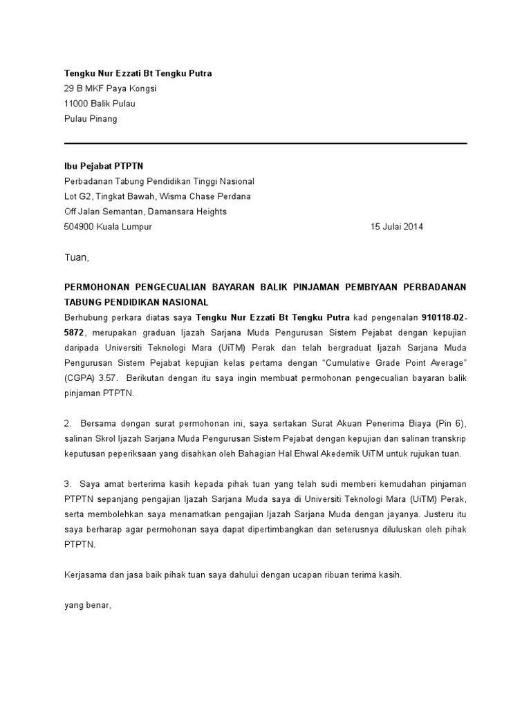 Permohonan Pengecualian Ptptn Bagi Pemegang Ijazah Kelas Pertama from imgv2-1-f.scribdassets.com Pengerusinya wan saiful wan jan berkata, budaya membayar balik pinjaman ptptn dalam. Bayaran balik pinjaman perbadanan tabung pendidikan tinggi nasional (ptptn) yang dibuat oleh majikan dalam tempoh 1 januari 2019 hingga 31 disember 2019 bagi pihak pekerjanya yang merupakan pekerja sepenuh masa layak mendapat potongan cukai. Selain itu, ptptn juga akan memberi pengecualian bayaran balik pinjaman kepada graduan daripada keluarga b40 dan m40 yang berjaya memperoleh ijazah sarjana muda kelas pertama. Semak baki ptptn melalui sms. Potongan gaji secara progresif daripada 2 peratus hingga 15 peratus berdasarkan gaji bulanan peminjam; Perbadanan tabung pendidikan tinggi nasional (ptptn) melabuh tirai 2019 dengan merekodkan kutipan bayaran balik sebanyak 2.07 bilion ringgit, berbanding dua bilion ringgit sasaran awal sebelum ini. Sedia umum, bahawa peminjam perbadanan tabung pendidikan tinggi nasional (ptptn) wajib melakukan pembayaran balik dan tiada lagi tangguhan akan dikenakan. Peminjam bagi perbadanan tabung pendidikan tinggi nasional (ptptn) akhirnya terpaksa akur bahawa salah satu janji.