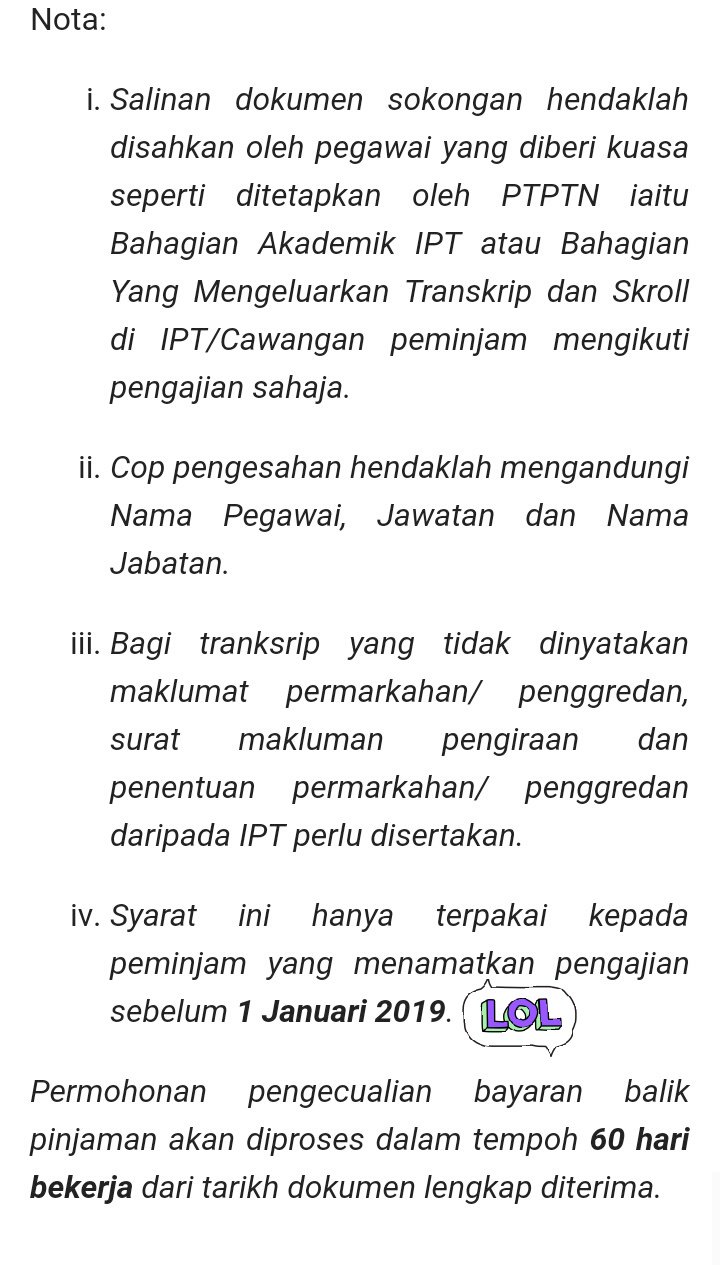 Related : Pengecualian Bayaran Balik Ptptn 2019 : 5 pelaksanaan dasar baharu ptptn sempena belanjawan 2019..